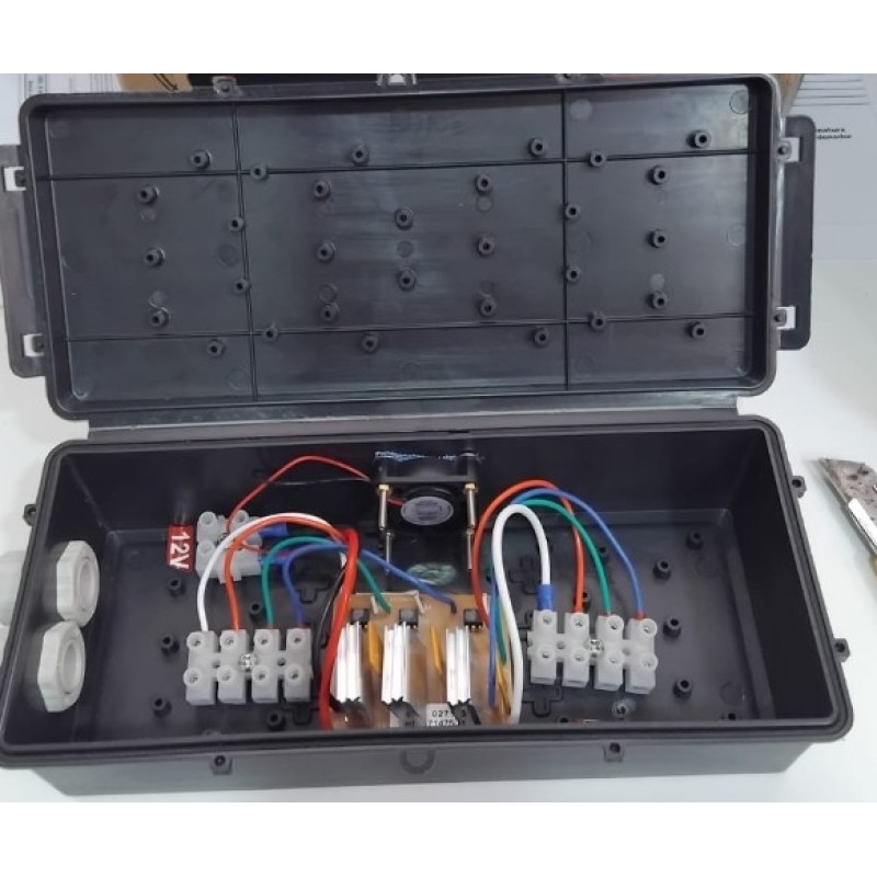 O módulo driver repetidor 300w é um driver de comnado que integra toda iluminação da piscina no sistema RGB. Com ele podemos instalar diversas baterias de refletores mantendo um único sinal e sincronismo de cores e funções. Ideal para piscinas de grande porte.